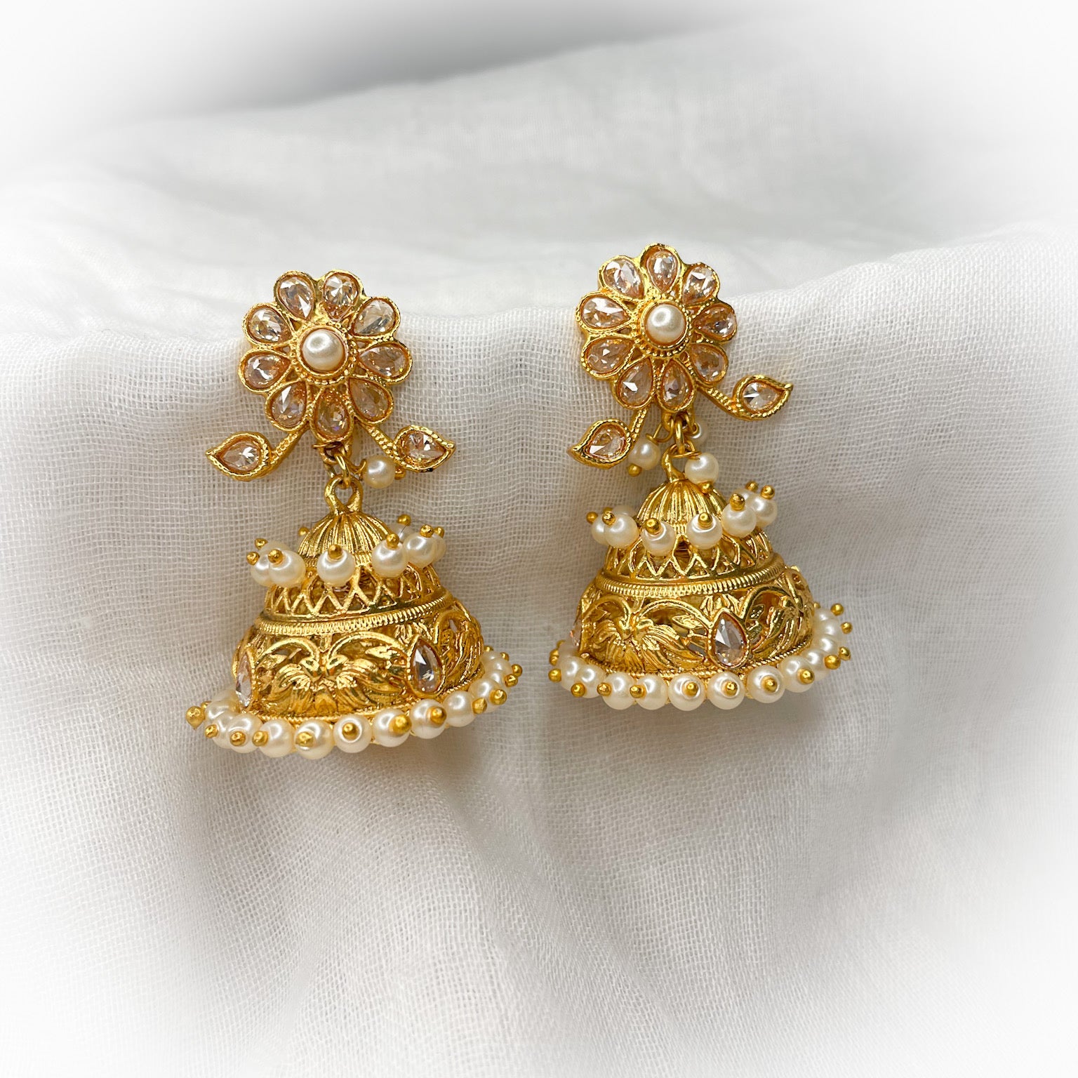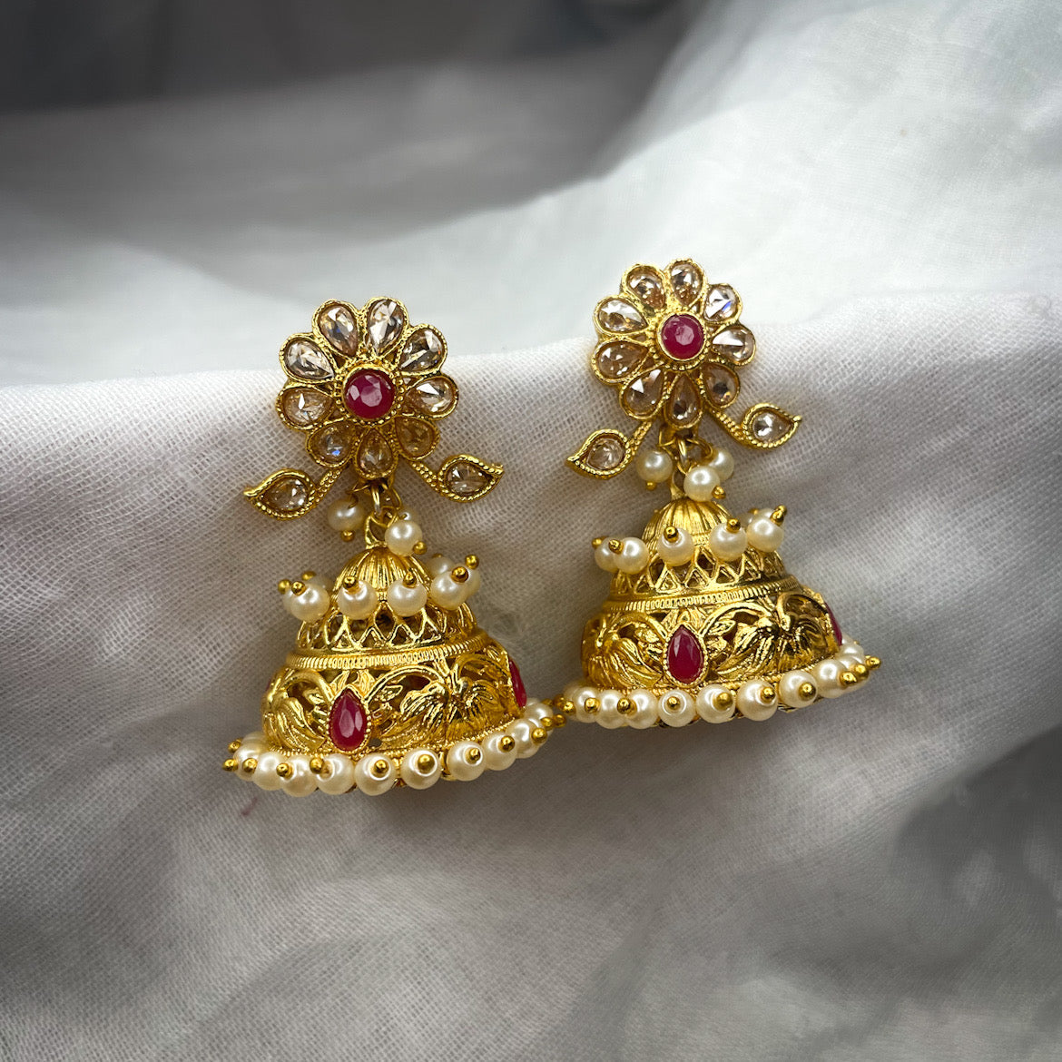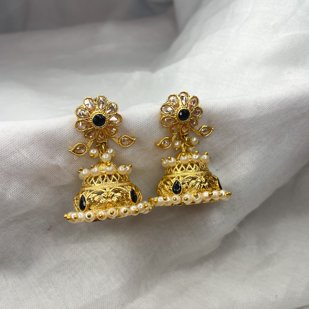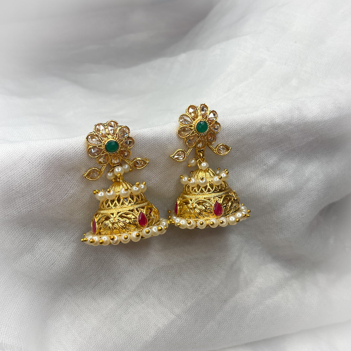 Gorgeous hand carved jhumkas with polki and pearls