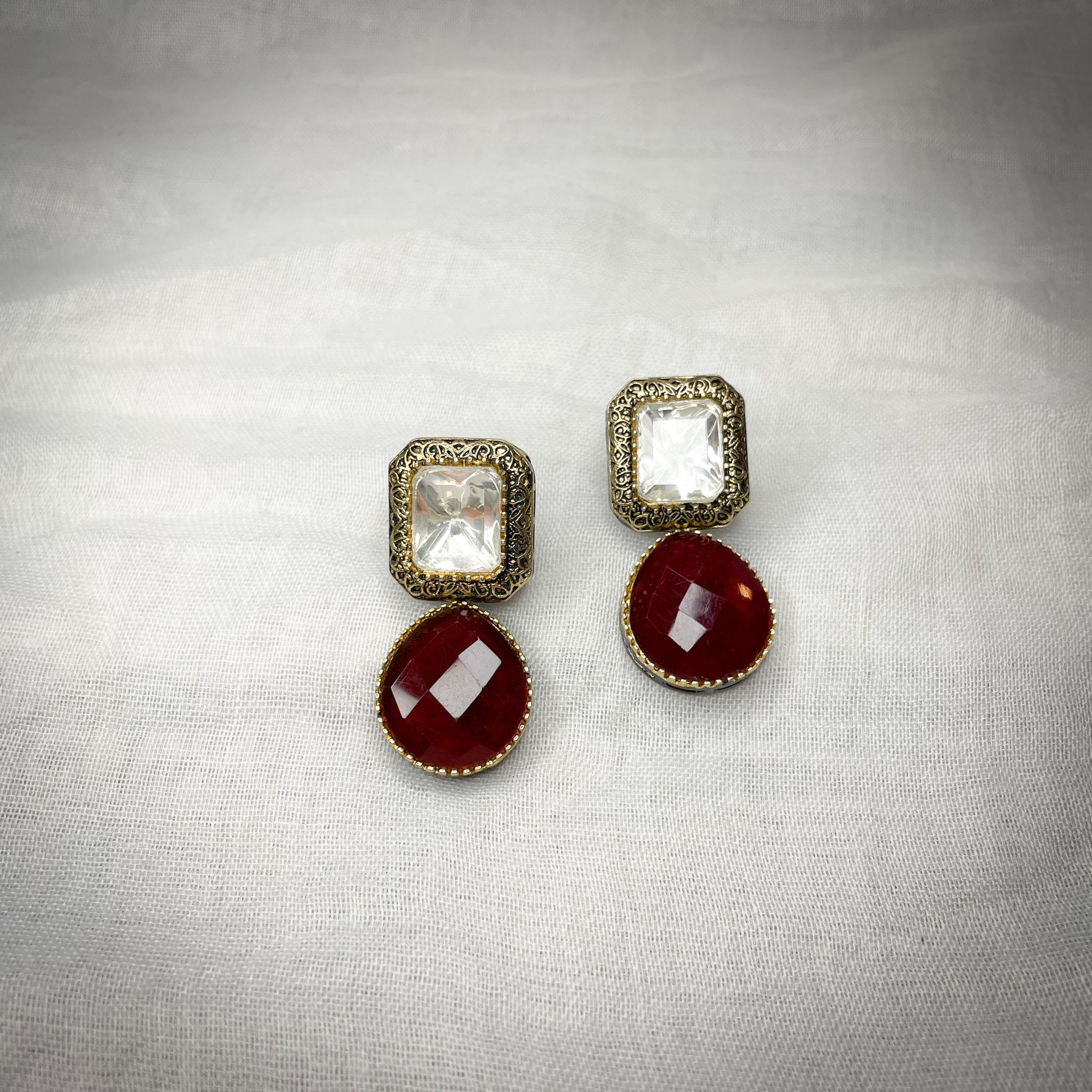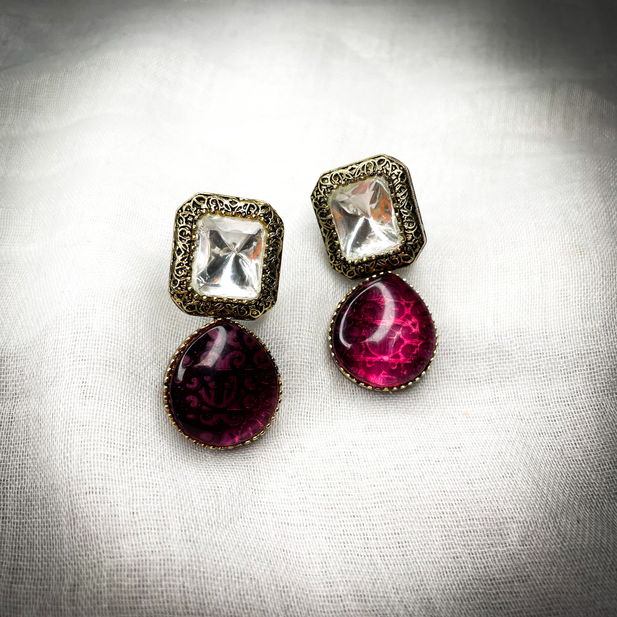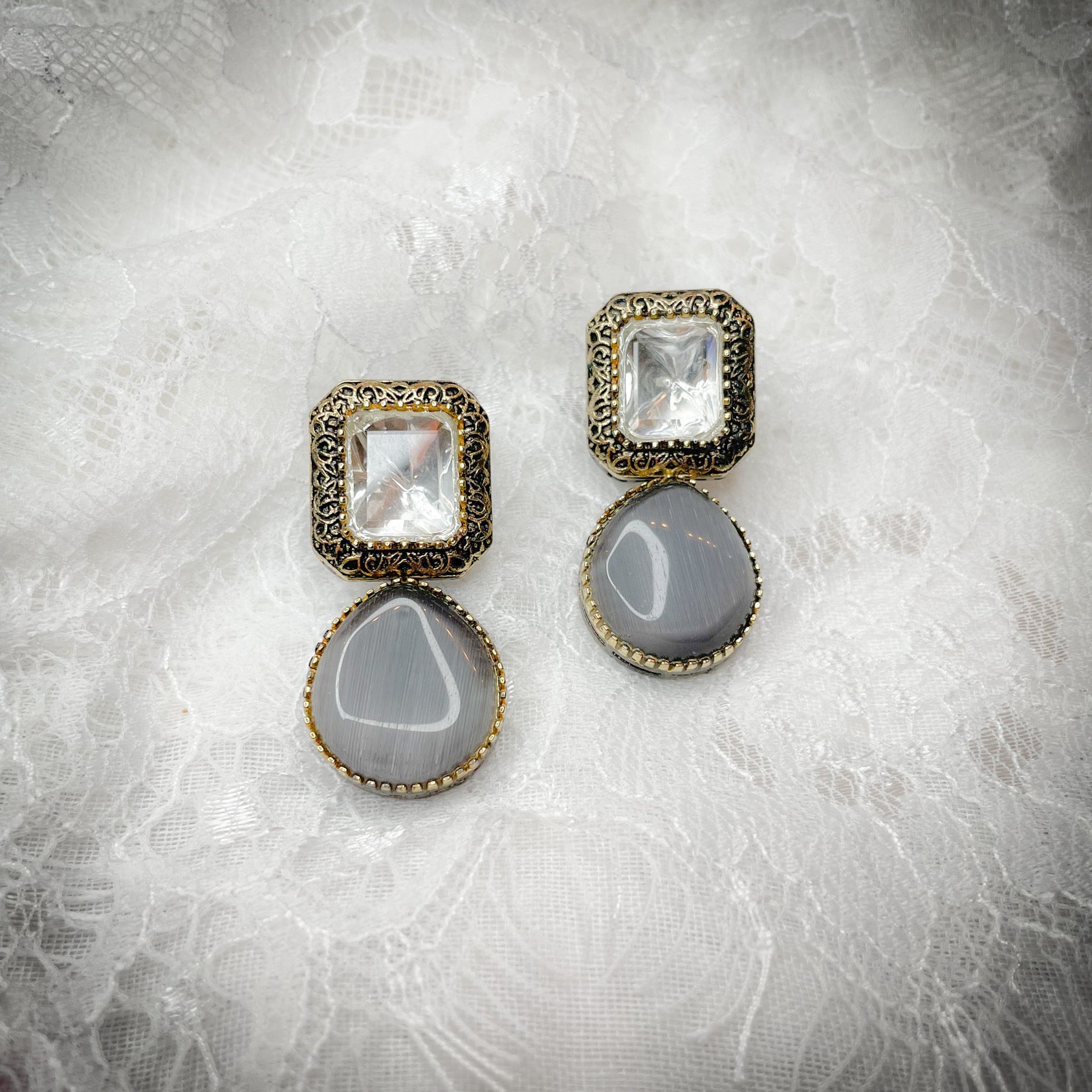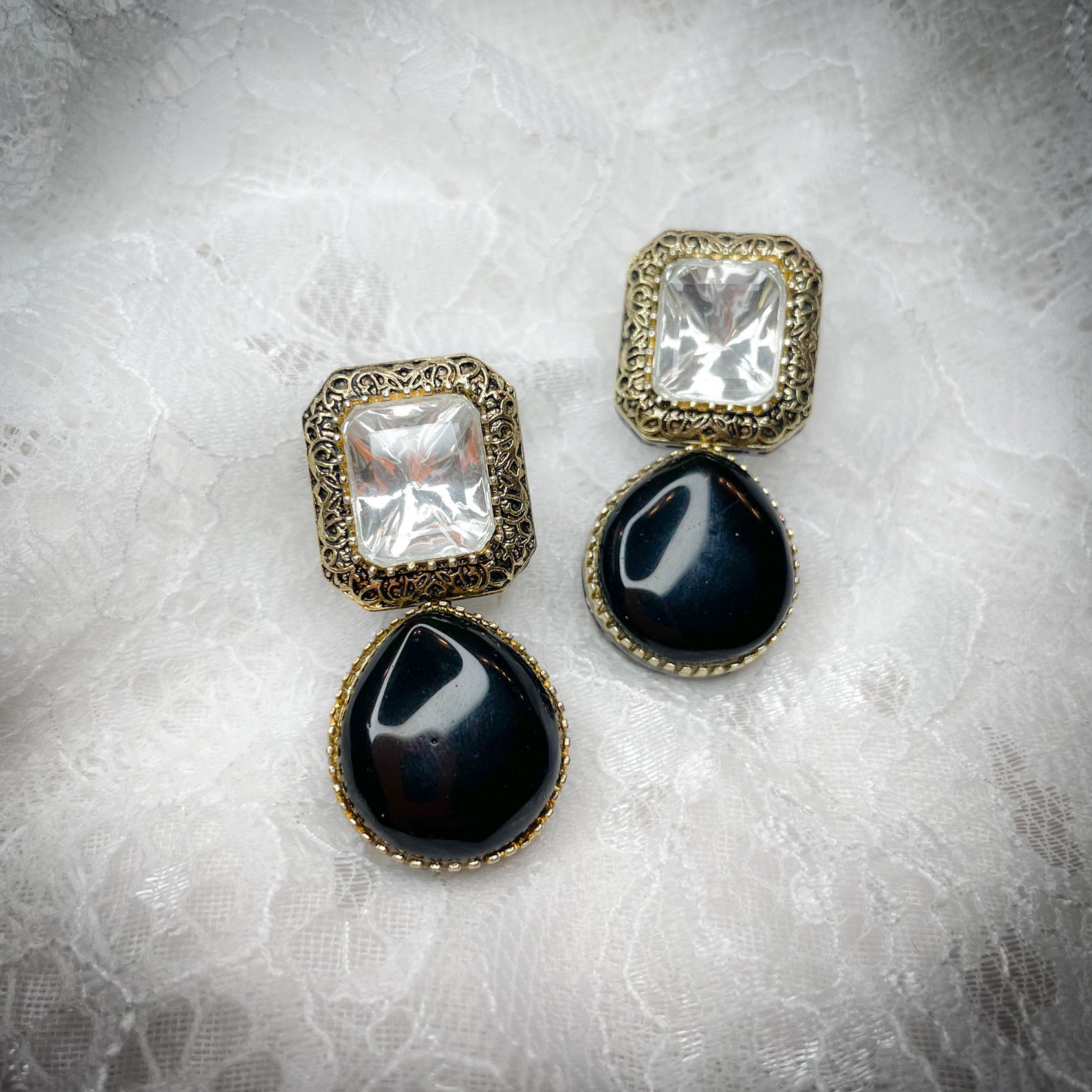 hand carved antique gold and gun metal plated earrings in an array of colors