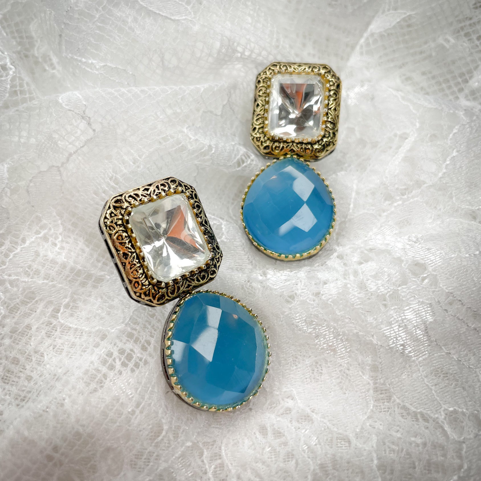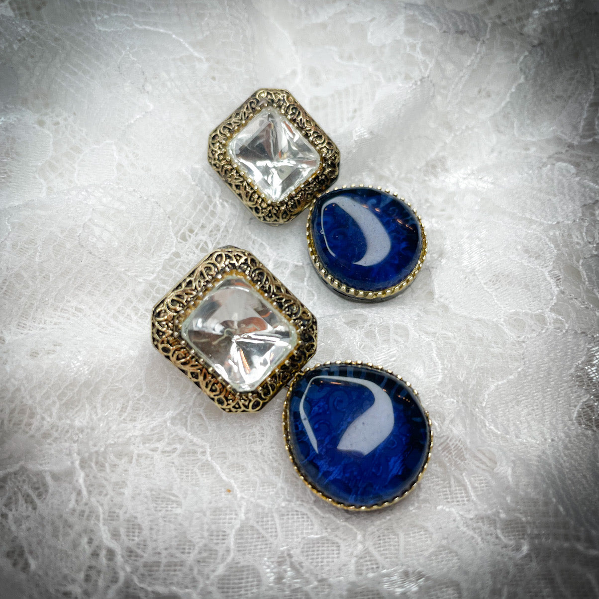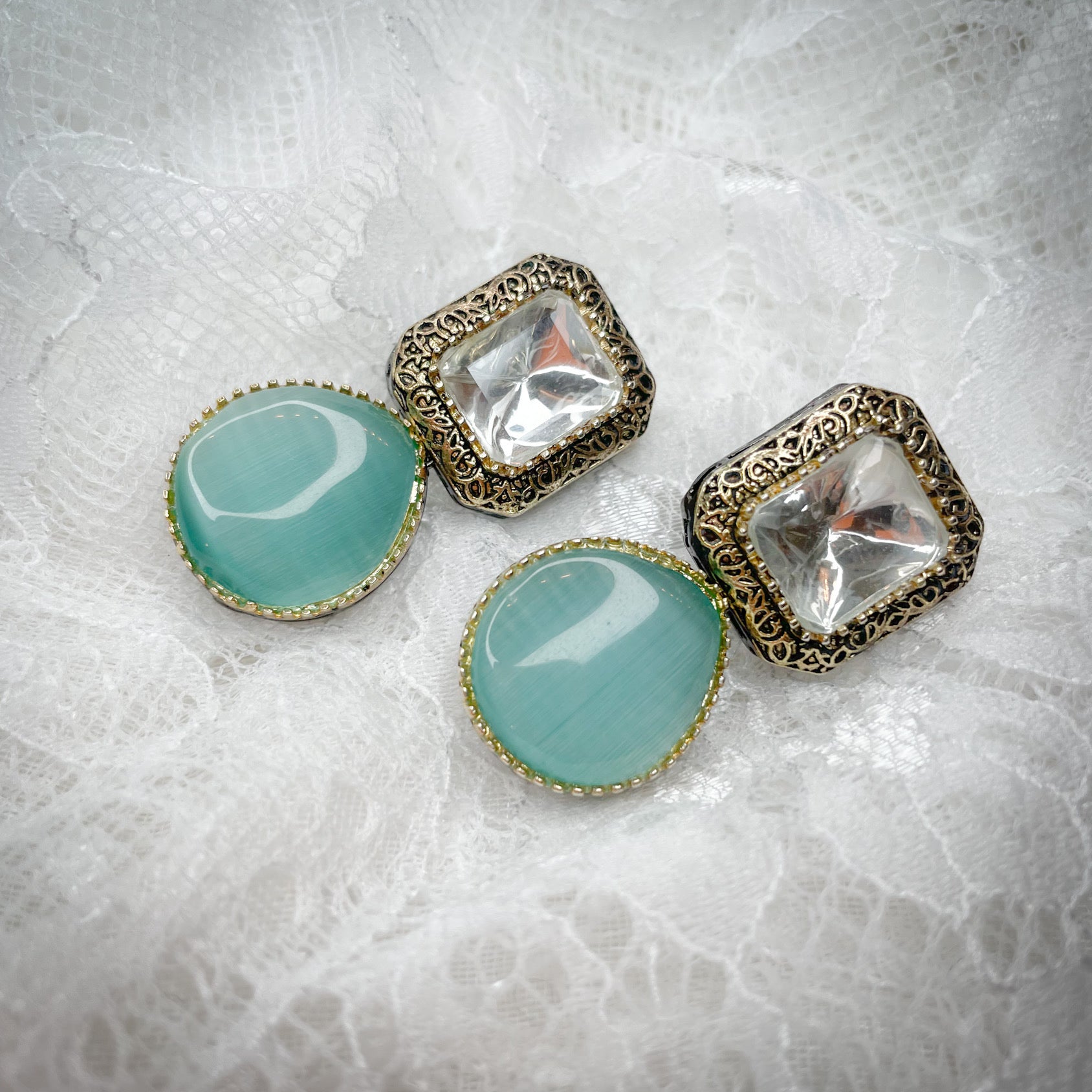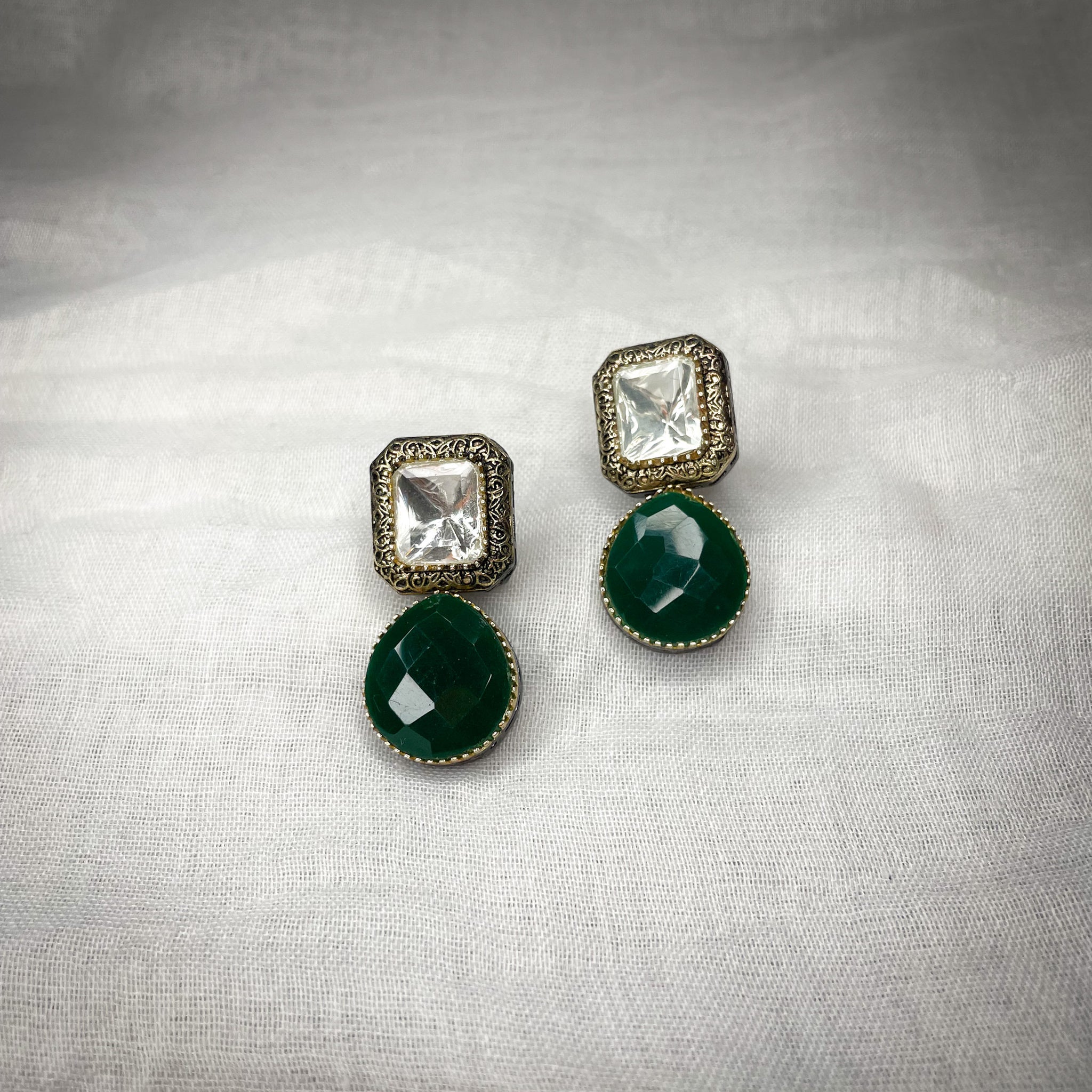 hand carved antique gold and gun metal plated earrings in an array of colors