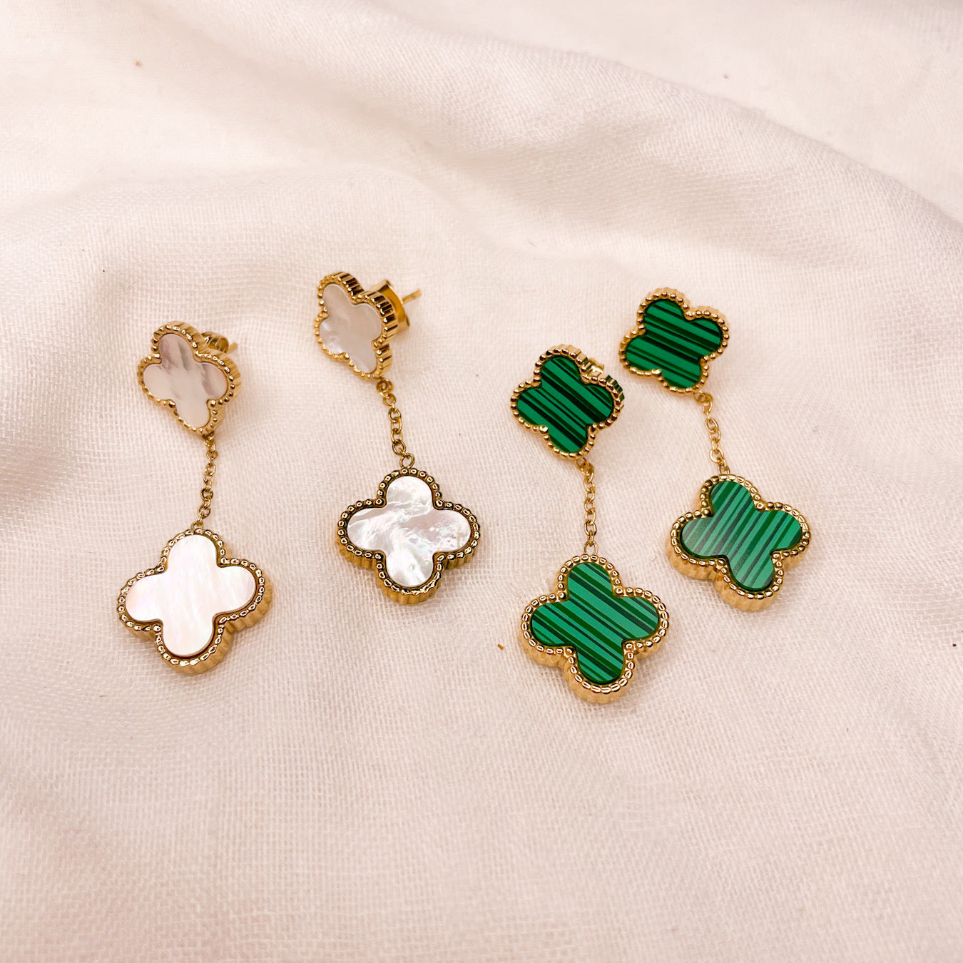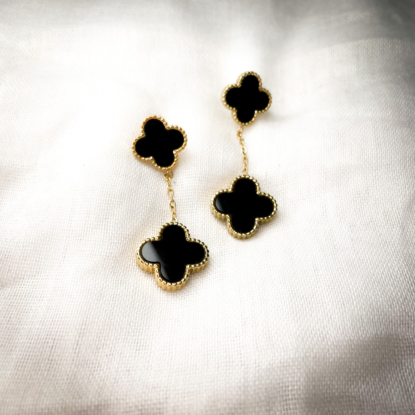 Ultra chic and graceful, opt for effortless elegance with our four leaf clover drop earrings