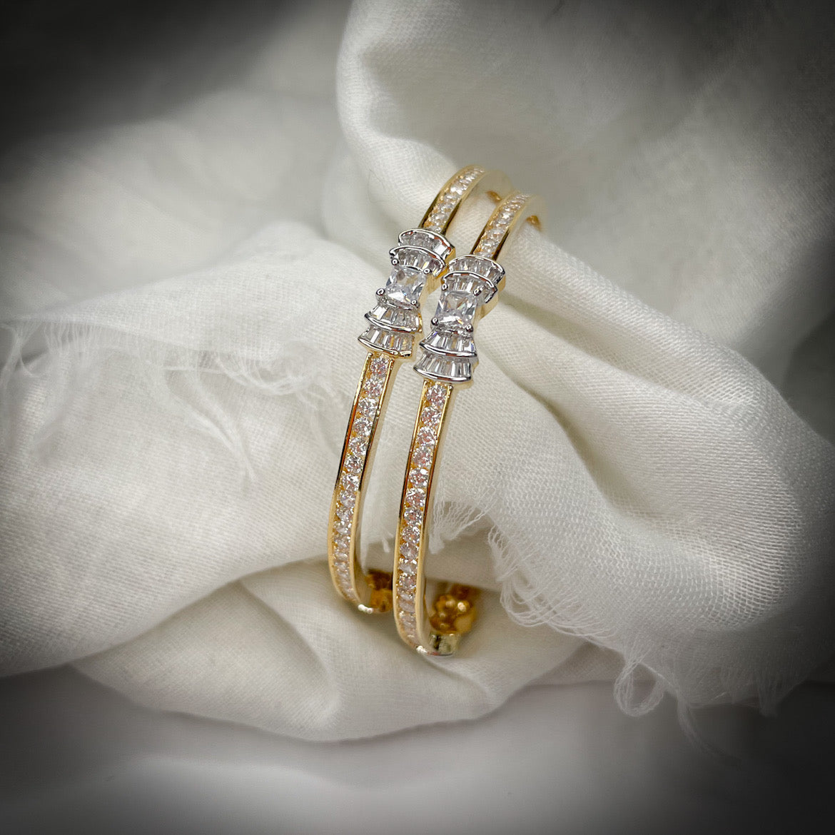 American diamond delicate bangles with gold polish