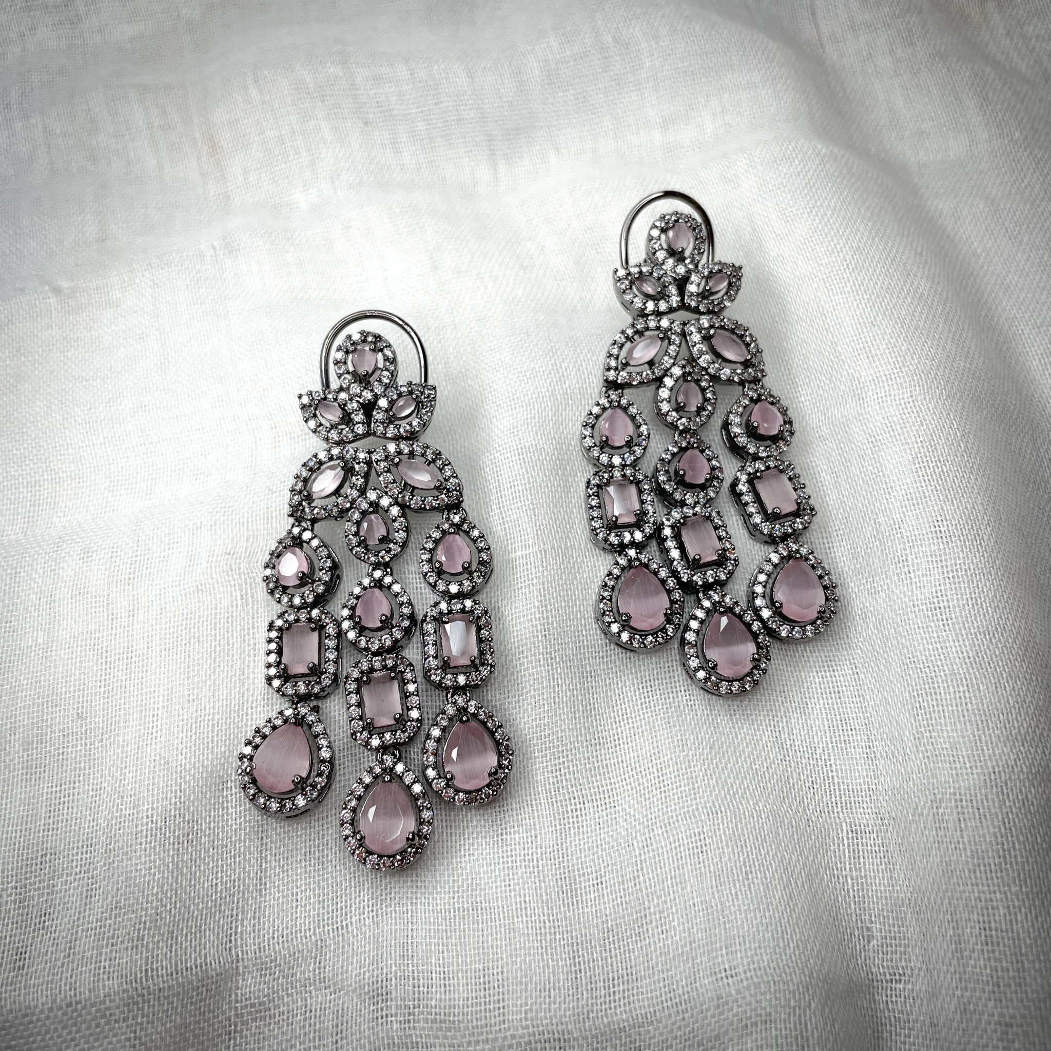 The Cascade earrings feature a gorgeous cascading design, made with assorted zircons, set in a silver grey plating. These will elevate even the plainest of outfits with an instant shot of glamour.