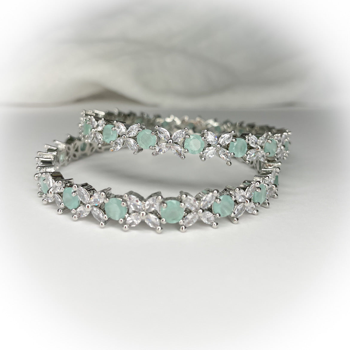 American diamond bangles with rhodium polish and mint stones