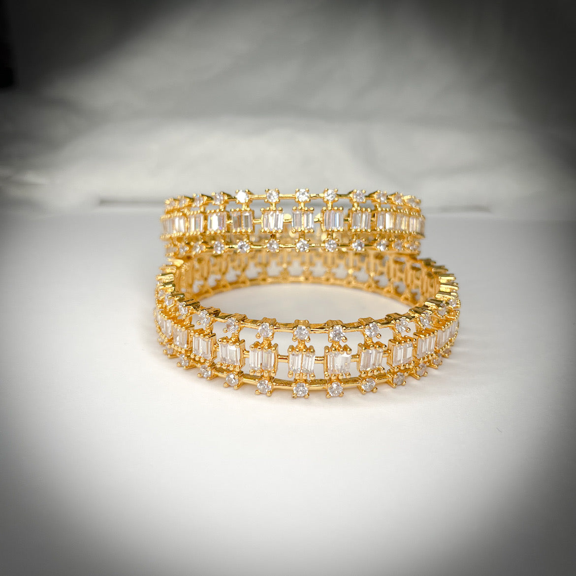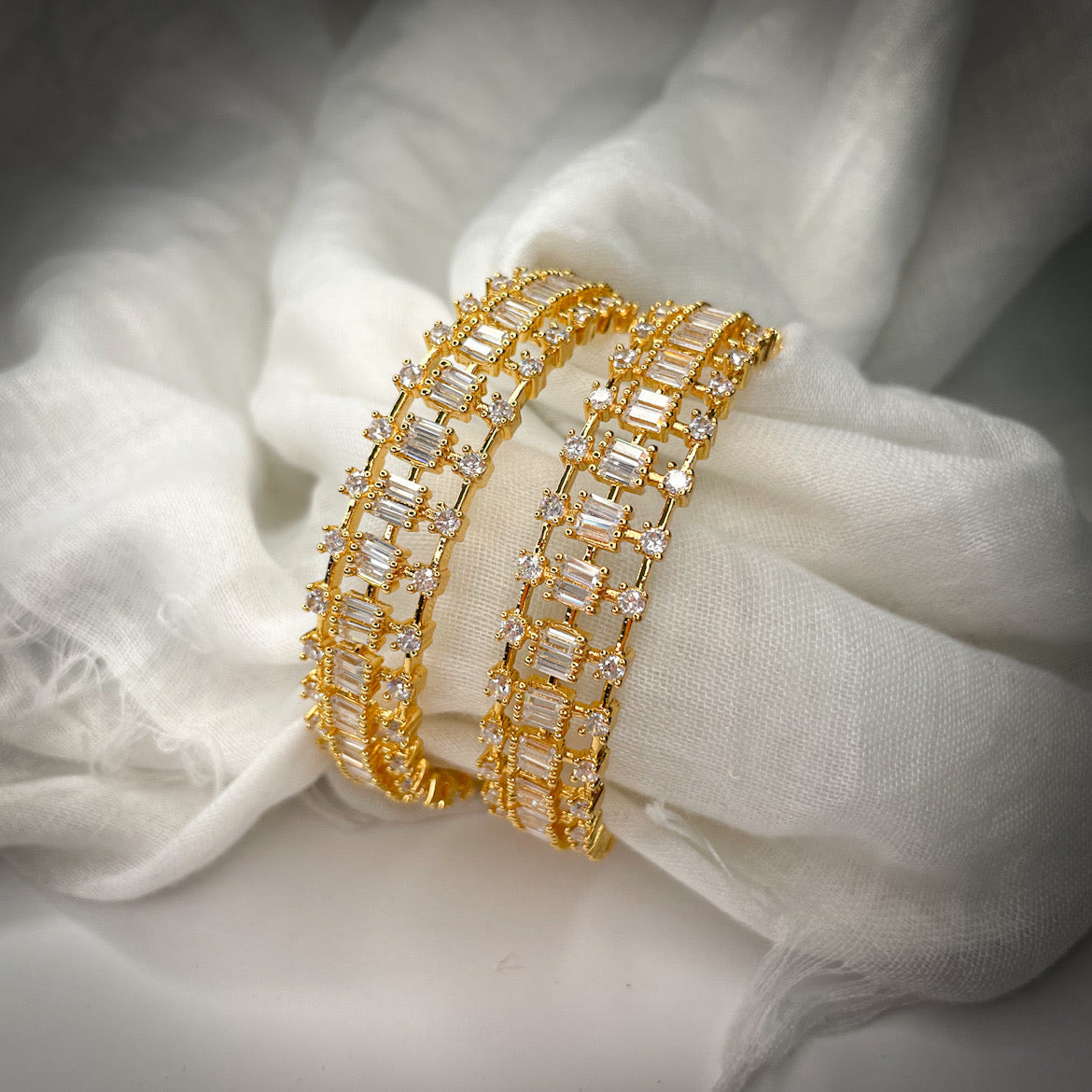 Gold polish bangles with American diamonds in an intricate baguette pattern