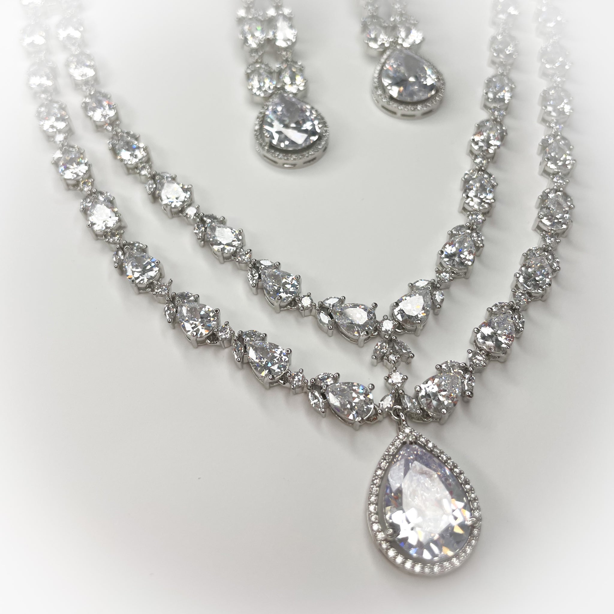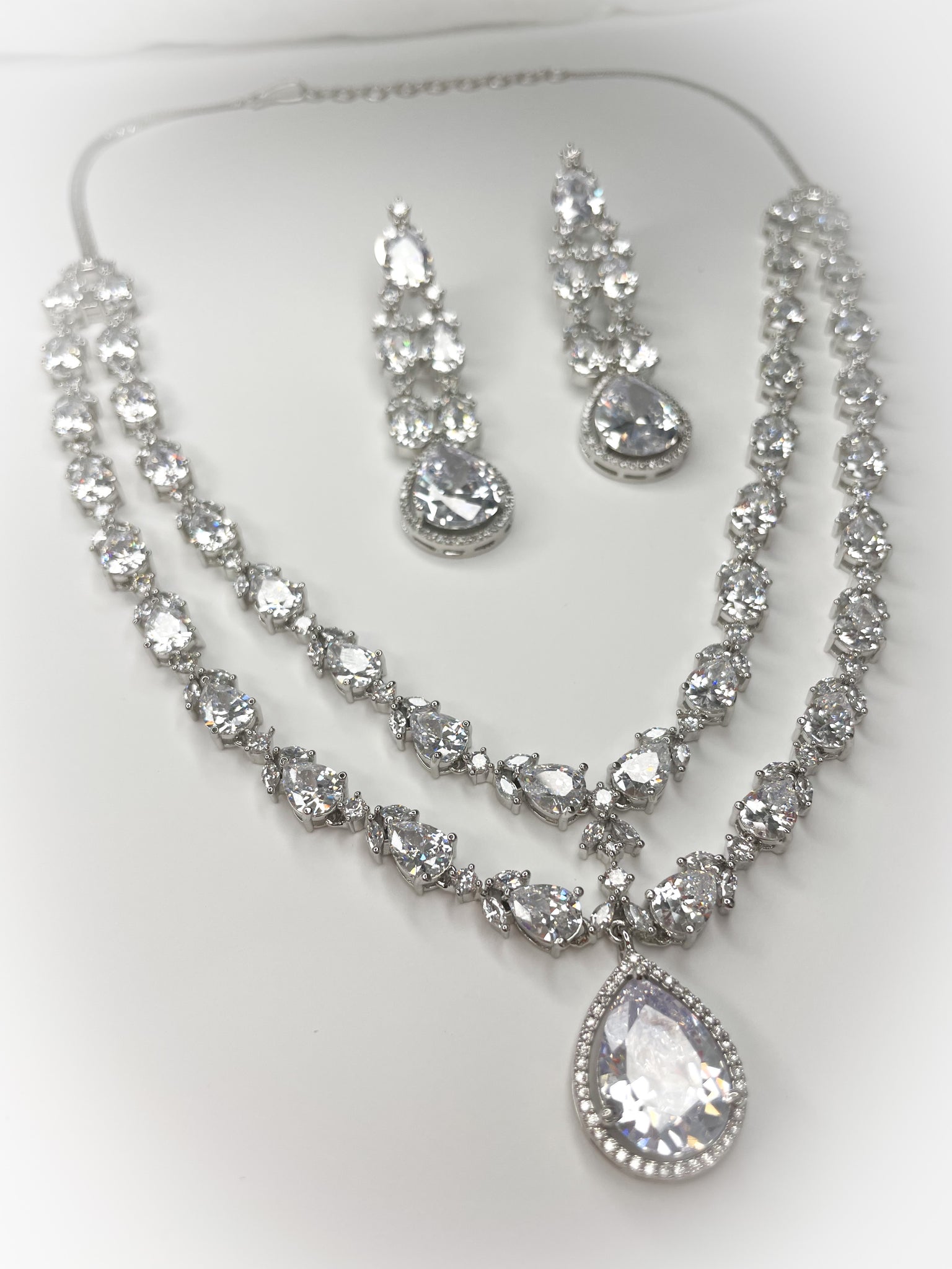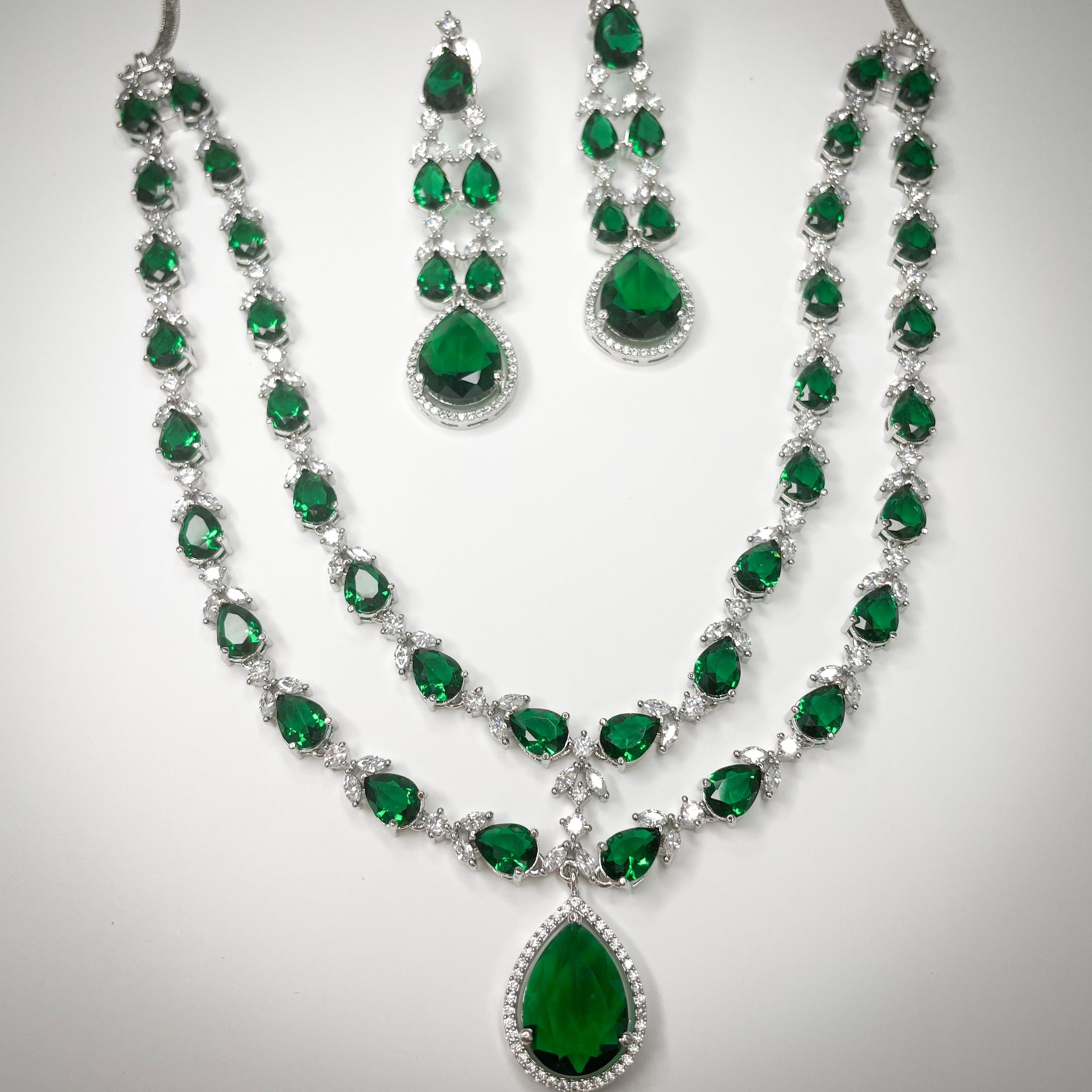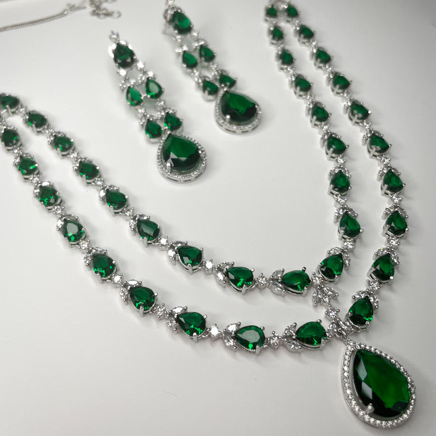 Savannah is our classic and elegant, American diamond design necklace set, featuring double strings and a striking diamond drop