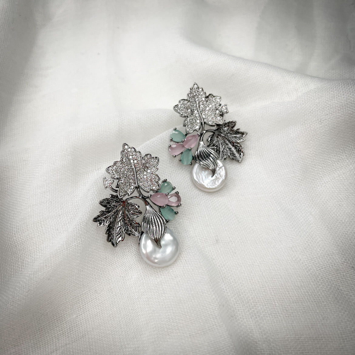 Silver foliage earrings
