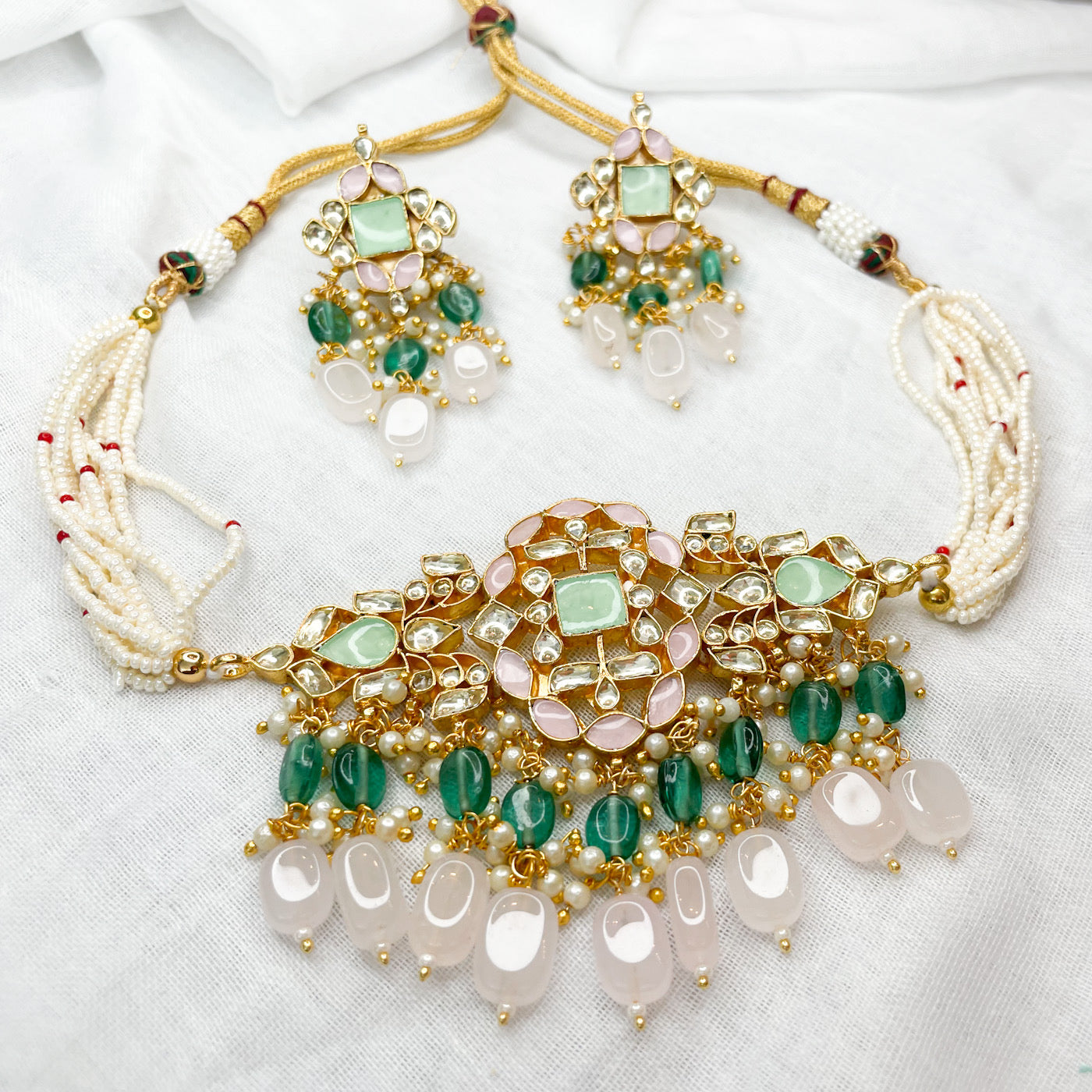 Our Paachi kundan chokers with earrings, available in a medley of beautifully vibrant color combinations.